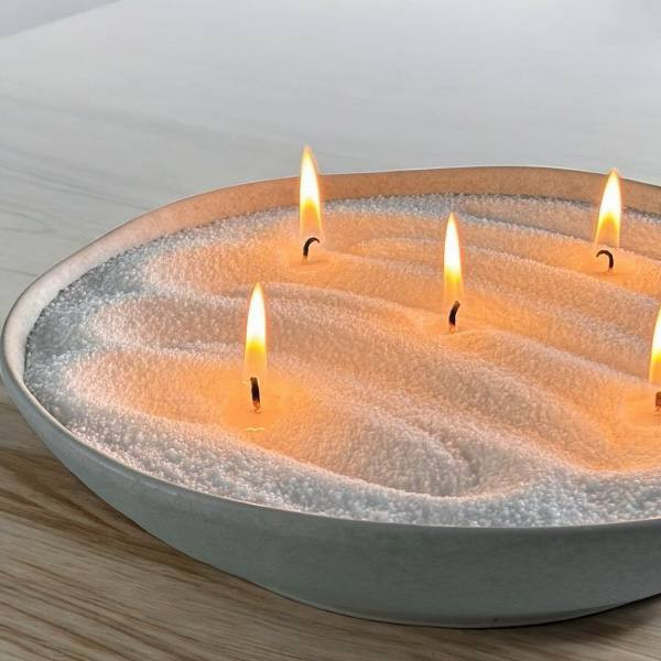 نوعی شمع است که به جای اینکه به صورت جامد باشد، به صورت پودر یا دانه های ریز عرضه می شود. این نوع شمع نیازی به ذوب کردن ندارد و به راحتی در ظرف مورد نظر ریخته میشود و با قرار دادن یک فتیله میتوان از آن استفاده کرد. شمعهای پودری به دلیل قابلیتهای رنگآمیزی و طراحی متنوع، محبوبیت زیادی پیدا کردهاند و میتوانند جلوهای منحصر به فرد به دکوراسیون ببخشند