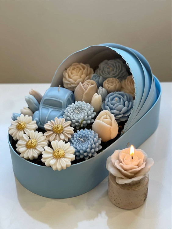 باکس شمع گهواره مژه کندل در دو رنگ آبی (پسرانه) و صورتی (دخترانه) آماده ارائه می باشد.