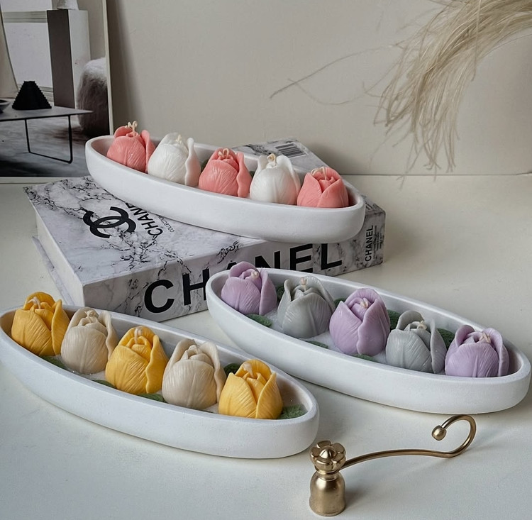شمع شات قایق گل لاله (جنس شات: سنگ مصنوعی)