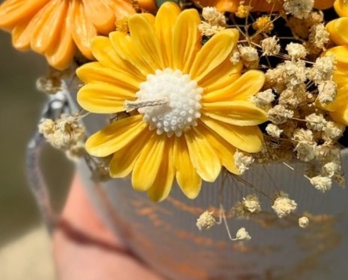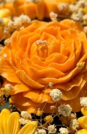 مژه کندل با طراحی یک باکس شمع از گل آلاله و بابون، رنگ های شاد را در هم آمیخته تا انرژی و شادی را برایتان به ارمغان بیاورد