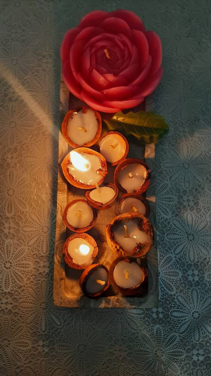 مژه کندل این بار با تلفیق هنر و طبیعت محصولی بینظیر را برای شما آماده نموده است.این شمع کوچ اما پر از معنا و انرژی پاک زمین و خورشید است. این شمع ها از پوست گردوی واقعی بوده و با ظرافت پاک سازی و آماده شده تا آتش را در دل خود آرام جای دهد.
